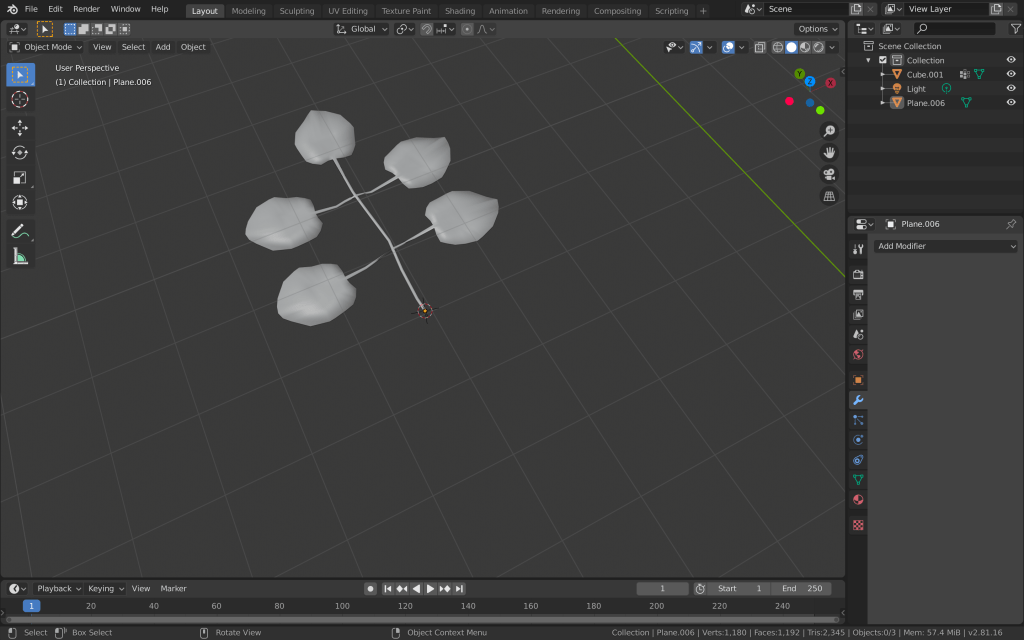 I added a a bit of thickness to it and then duplicated it four times. I then connected the five leaves and made them one object.